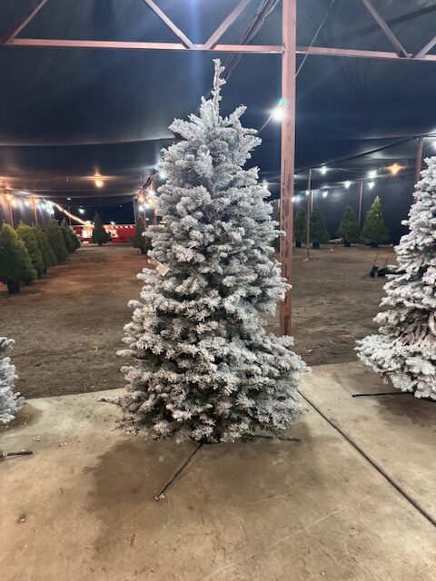 Want that ‘White Christmas Feel’? Select your tree and we will flock it. 48 hour notice required.